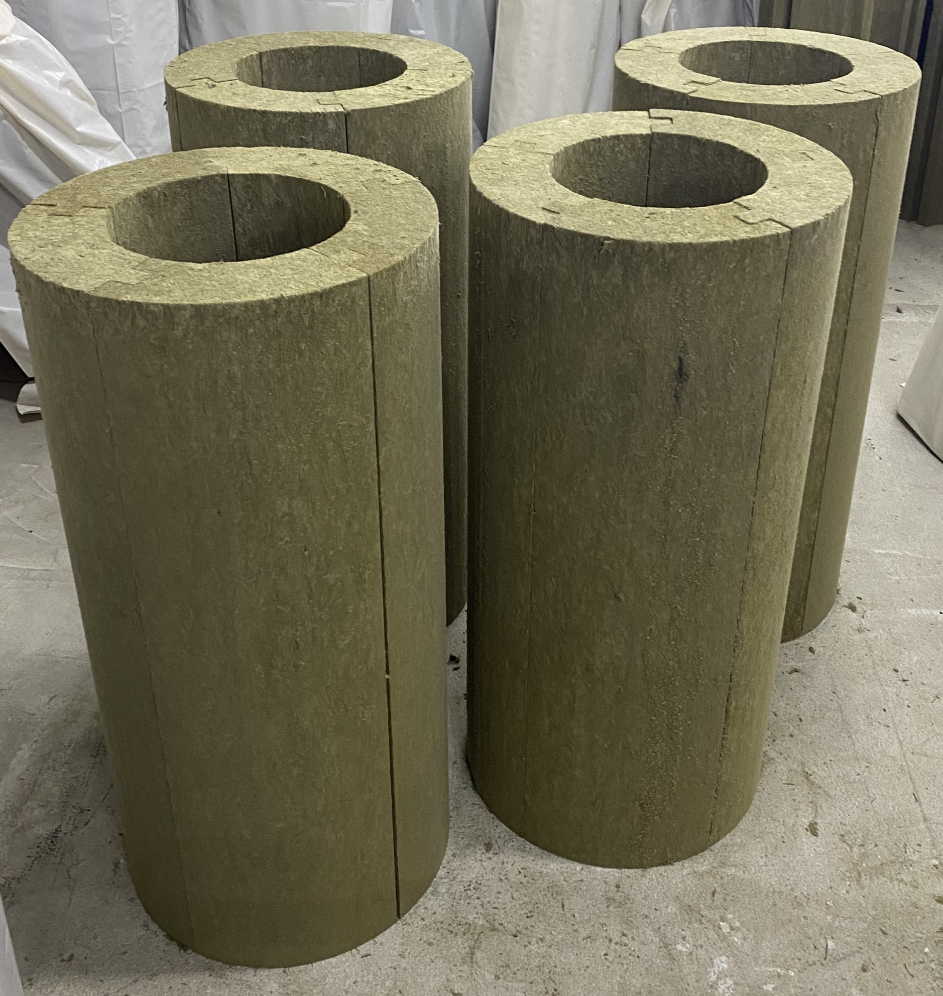 Небольшие диаметры производятся цельной трубой, диаметры более 200мм, выполняются в виде двух сегментов, более 500 мм - в виде трех или четырех сегментов, соединяющихся друг с другом с помощью теплового замка, который, кроме удобства монтажа, предотвращает возникновение тепловых мостиков. Длина готовых Базальтовых цилиндров составляет 1 метр.